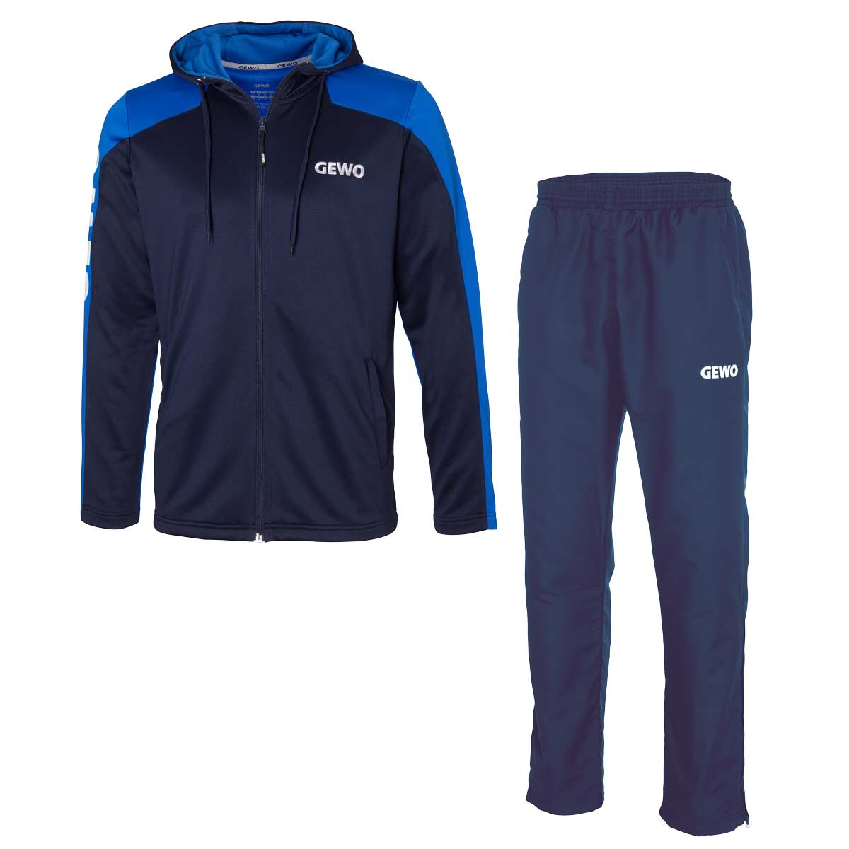 Bluza zapinana na zamek, logo Gewo na prawym rękawie, na piersi i na lewej nogawce spodni.
