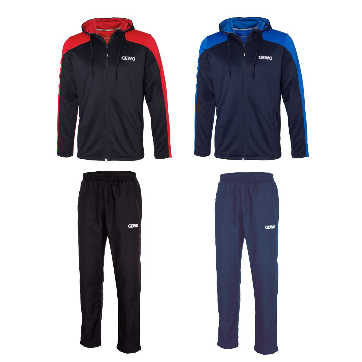 Komfortowy dres z nowej kolekcji Gewo 2022. W dwóch wersjach kolorystycznych: granatowo - niebieski i czarno-czerwony.