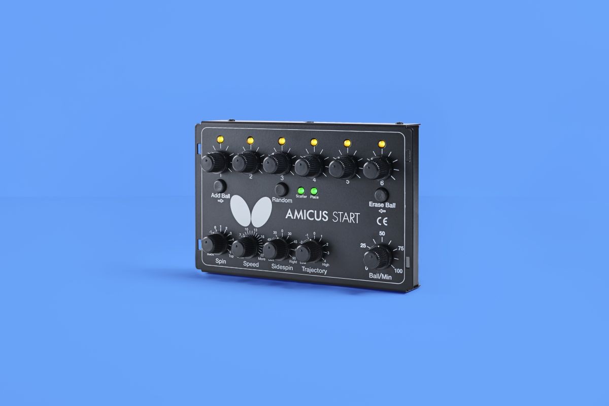 Amicus Start to wysokiej jakości robot do tenisa stołowego łączący wytrzymały i precyzyjny osprzęt z łatwym w obsłudze panelem sterowania. Pozwala na stworzenie ćwiczeń składających się z maksymalnie 6 piłek. Amicus Start pozwala na różnicowanie ich miejsca odbicia w układzie prawo-lewo i ustawienie żądanego poziomu rotacji, szybkości i trajektorii (taki sam dla wszystkich piłek). Funkcja Random (przypadkowego trybu gry) stwarza realistyczne wrażenie prawdziwej wymiany piłek. Torba Amicus w zestawie.