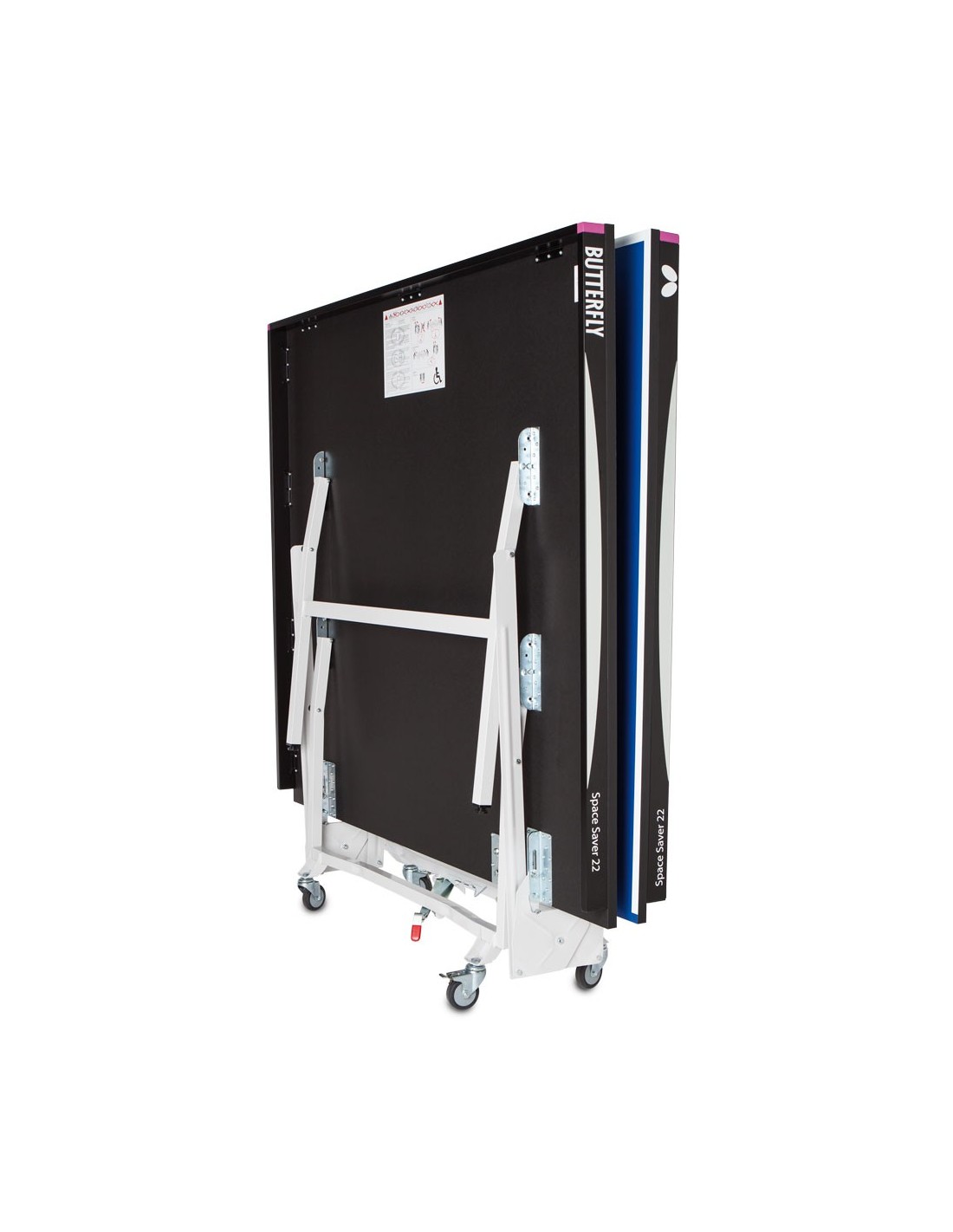 - Butterfly SPACE SAVER 25 jest jednym z niewielu stołów przystosowanych do wymagań osób niepełnosprawnych grających na wózkach. Odległość od brzegu blatu do pierwszej nogi wynosi 400 mm i odpowiada standardom paraolimpijskim.